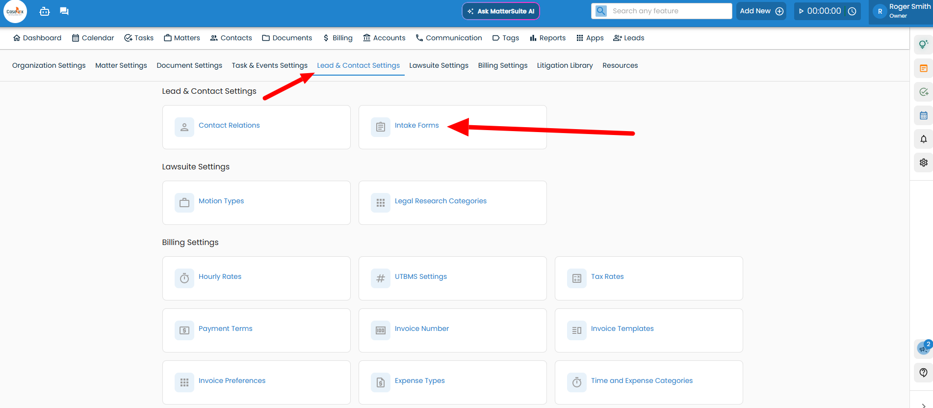 2. Under Lead & Contact Settings, click on Intake Forms.