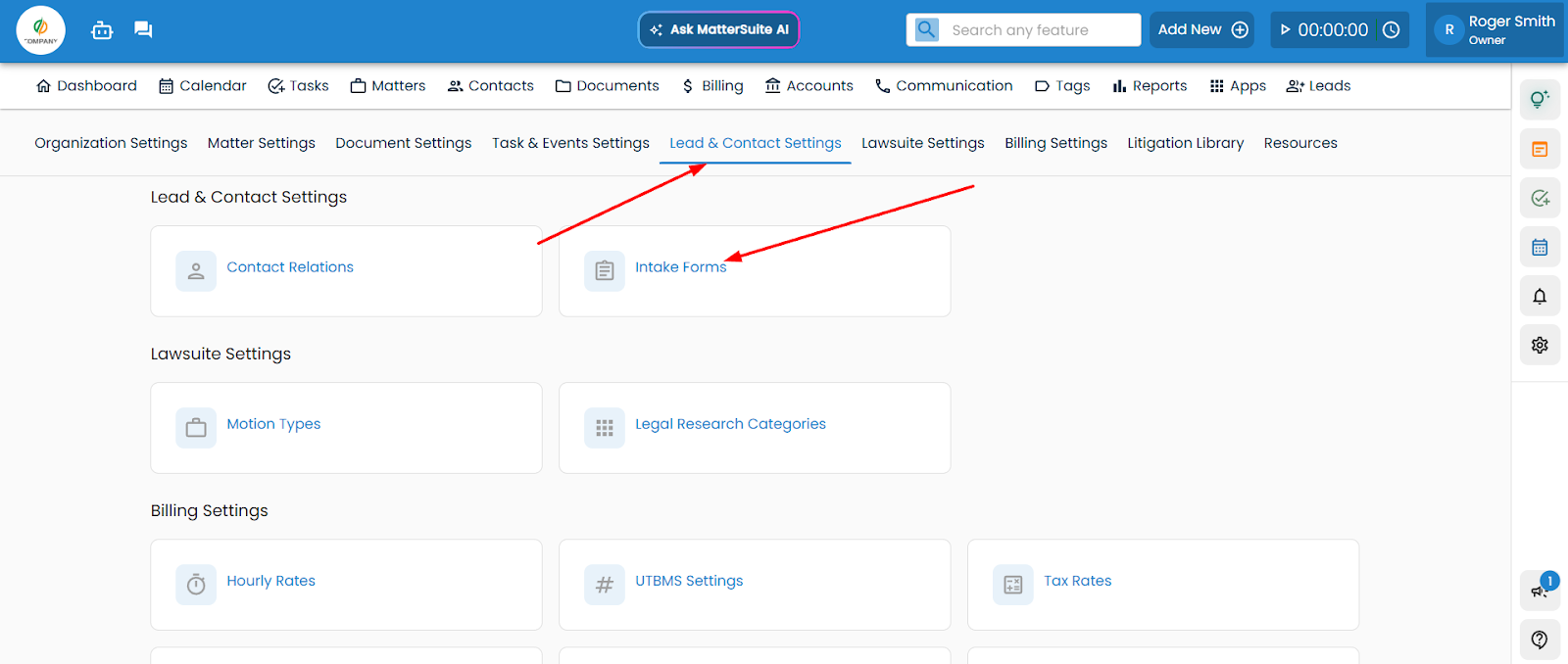 Go to your MatterSuite Dashboard. Navigate to the Matters section. Click on the Add New Matter button. Enter all the required details such as client name, description, and case type. Click Save to successfully create your new matter. Refer to this ...