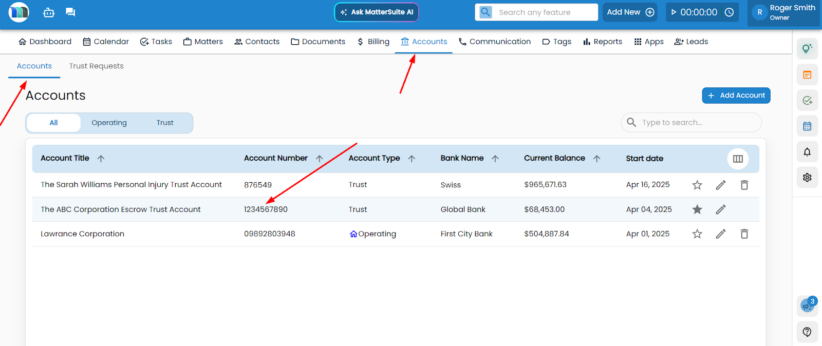 Account Type Purpose Operating Account Used for standard firm transactions such as invoicing, expenses, payroll, or vendor payments. Trust Account Used to hold client funds securely until billed or disbursed. Required to follow client trust ...