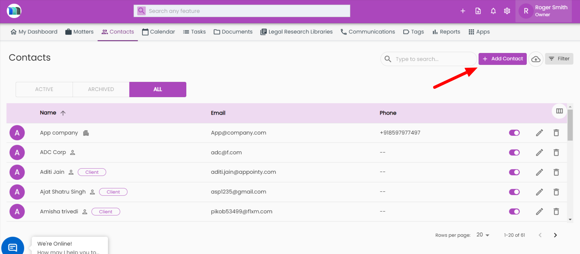 2 - Click on the "Add Contact" button to add a new contact.