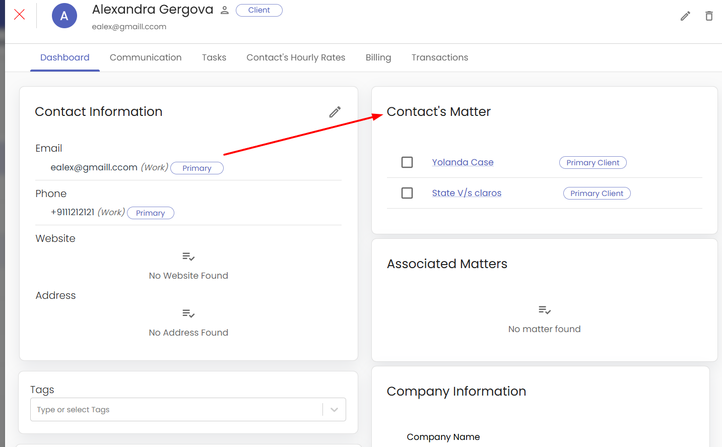 The Contacts module serves as a centralized hub for managing and storing all contact details — including clients, vendors, witnesses, opposing counsels, and other related parties — in one convenient location.