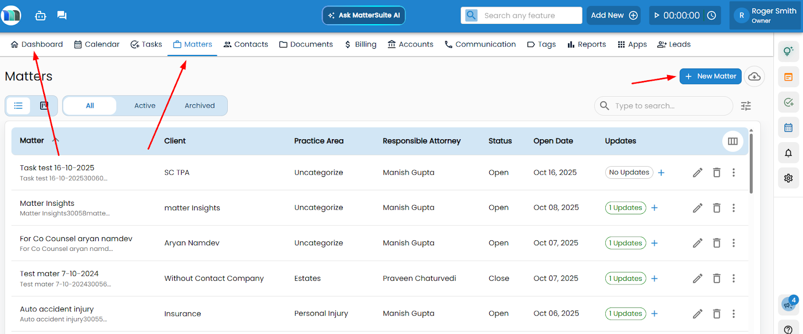 Go to your MatterSuite Dashboard.