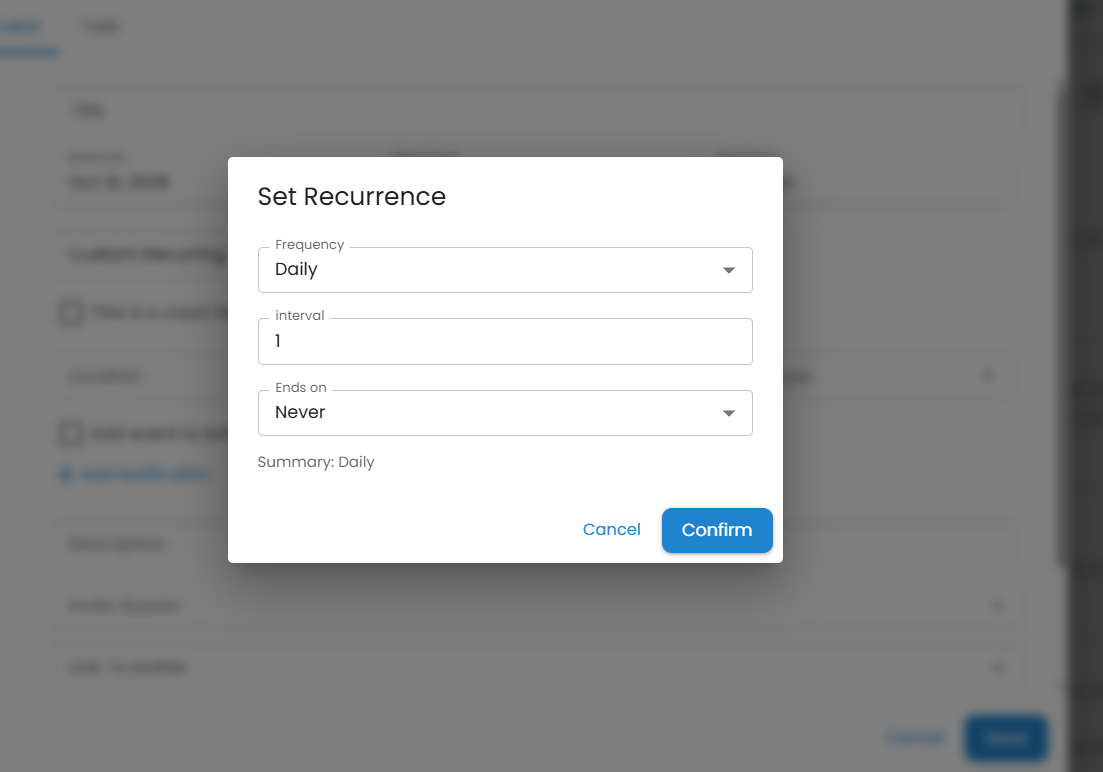Click on “Add” to create a new event, or click on any date in the calendar to create one A pop-up will appear. Fill in the title & select the date Enter all the required details Save the new event